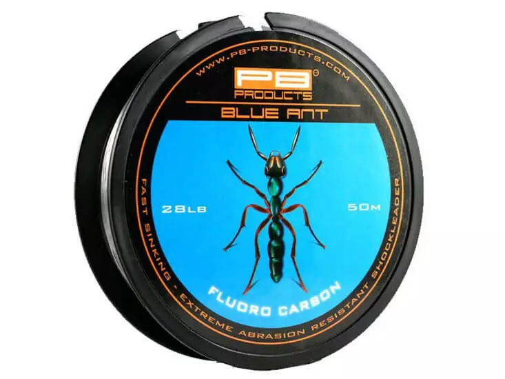 Het Blue Ant leadermateriaal van PB Products wordt geleverd op spoelen van 50 meter en heeft een trekkracht van 28 lb (de diameter is 0,46 mm).