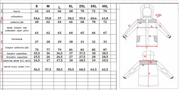 De jas bevat een lichte voering waarmee je lekker warm blijft. Daarnaast zijn de polsbanden en taille band aan te passen voor een goede pasvorm. De broek heeft geen voering en is makkelijk aan of uit te trekken door de gladde binnenvoering en de hoge ritsen aan de onderkant. De elastieken schouderbanden kun je ook makkelijk verwijderen