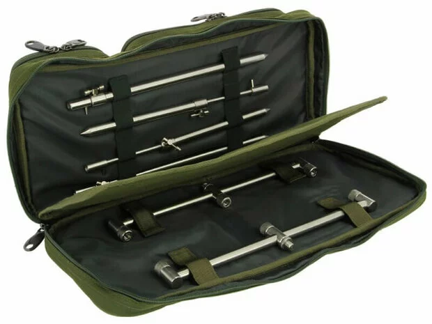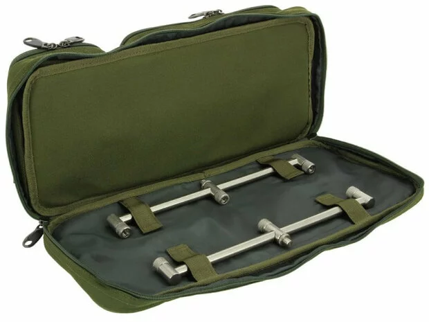 Buzzerbar bags zijn een perfecte bescherming voor je buzzerbars, banksticks en beetmelders. Aan de binnenkant berg je veilig je buzzerbars en banksticks op. Ze kunnen niet schuiven en door de scheidingsflap ook niet elkaar beschadigen. In de buitenvakken kun je beetmelders, batterijen, hangers en andere accessoires opbergen. Onmisbaar als je zuinig op je visspullen bent!