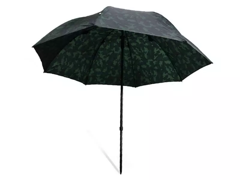 De paraplu is voorzien van unieke camouflageprint en is daardoor erg gewild bij karpervissers. Hiermee wordt je helemaal één met de natuur en ben je op afstand volkomen onzichtbaar. De paraplu weegt 2,2 kilo en de maximale lengte van de steel is 190 cm.