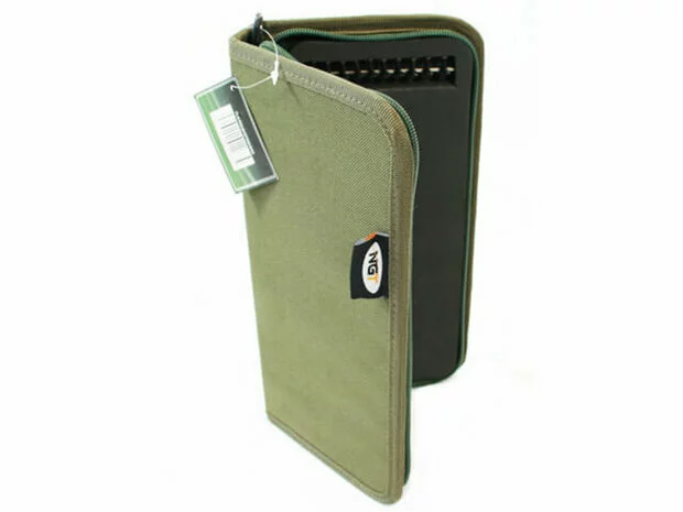 Deze dubbelzijdige rig wallet heeft aan allebei de kanten foam om je onderlijnen op te bergen. Hierin kun je met gemak 20 karper rigs in kwijt. Bespaar tijd aan de waterkant door je rigs thuis alvast te knopen, en neem ze mee in deze rig etui.