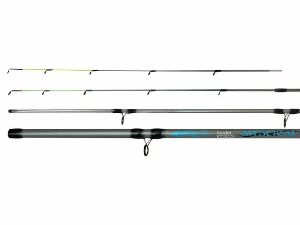 Het is een 3-delige hengel die compleet geleverd wordt met 2 feedertopjes (een lichte en een wat zwaardere top).